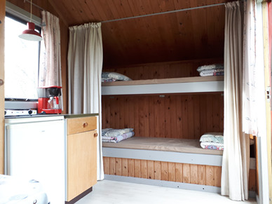 Cottage type 1 Cottage on 12 m2 with 4 beds. There is no water in the cottage. You use the bath and toilet on the campsite. There is a kitchen in the cottage. Price for renting this cottage incl. 4 persons is: Spring season and autumn season Dkr. 6645,- per night High season Dkr. 720,- per night